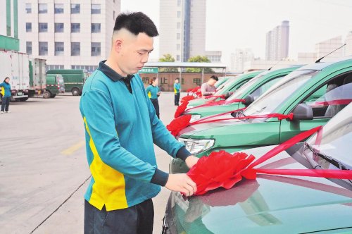 推行中心乡镇支局建设,农村投递汽车化是关键环节。今年10月30日,商丘市邮政分公司举办了“推进快递进村 助力乡村振兴”“私车公助”车辆交接仪式。活动现场,31辆绿色投递车排成一行,构成一道亮丽风景。目前,这些崭新的车辆已投入商丘市各中心乡镇支局邮件转运投递环节。新车投入使用后,商丘市分公司中心乡镇支局段道汽车投递率达到100%,农村段道汽车投递率达到76.9%,为三级物流体系建设增添了动能。