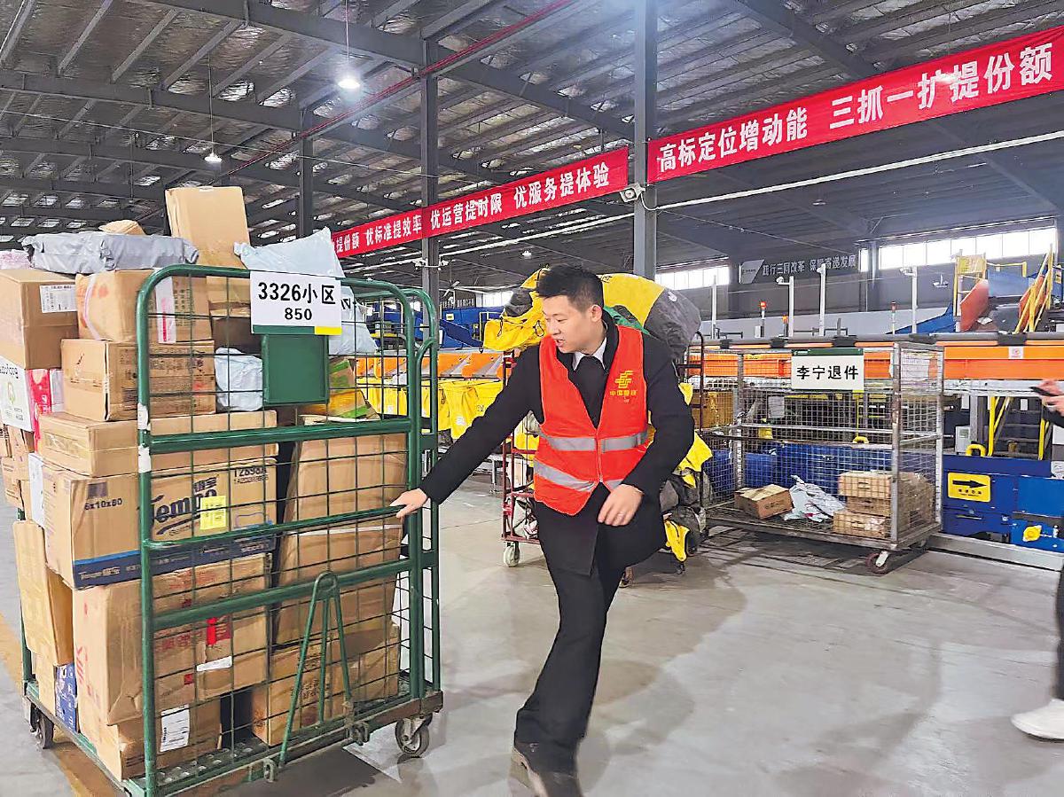 春节期间,湖北省荆门市邮政分公司邮件处理量远超往年。该分公司党委迅速行动,根据邮件处理现场和揽投部实际生产需求,紧急集结党员和青年力量,成立党员帮扶突击队,协助完成装车、卸车、供包等工作。在大家的共同努力下,邮件处理各环节有条不紊,始终保持着平稳、高效、有序的生产作业秩序。