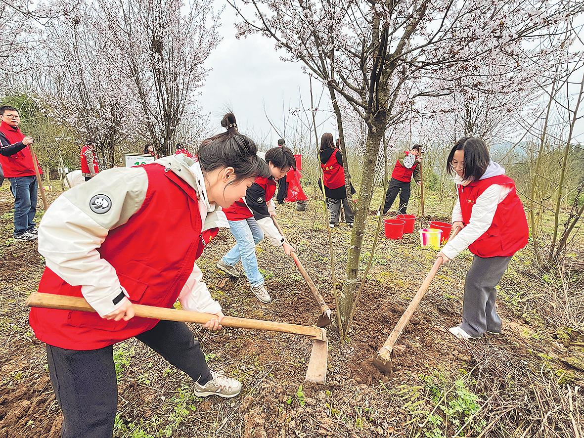 活动开始前,龙泉山城市森林公园管委会开展了义务植树倡议宣讲,对中邮保险四川分公司坚持参与“包山头”义务植树活动给予充分赞扬。随后,大家跟随引导员来到6年前的栽植区域,对自己栽植的树木开展抚育管护。看到栽植时齐膝高的树苗已长成枝繁叶茂、花开满冠的大树,大家都非常开心。□韩林 摄影报道