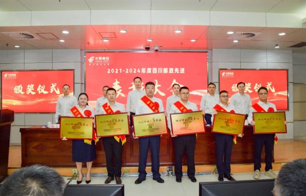 表彰大会在热烈喜庆的氛围中进行,自贡市分公司等30个先进单位,简阳市云龙邮政支局等120个先进集体,乐山市犍为县分公司孝姑镇营业所经理蒋兆琴等162名先进个人受到表彰。