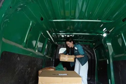 新能源汽车派送包裹。杨英摄