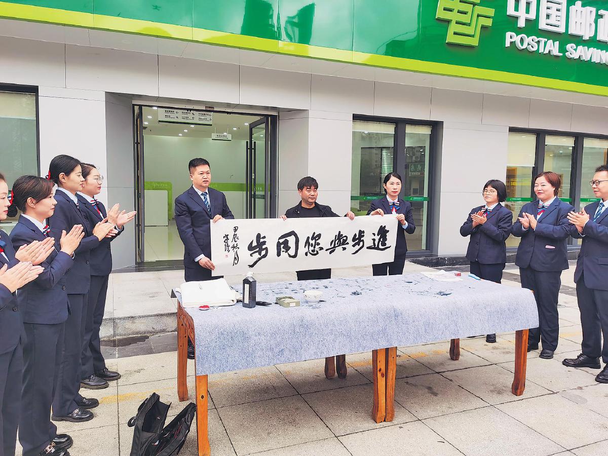 除网点环境布置外,印江县支行持续强化特色服务,以书法为亮点,组织开展主题活动,为客户提供差异化体验。该支行邀请书法家协会会员到现场书写书法作品,并将作品赠予客户及网点周边居民。通过常态化开展送对联、书法知识交流创作等各类文化交流活动,该支行为广大书法爱好者提供了宝贵的交流平台,拉近网点与客户及周边社区居民的距离。还邀约客户参加书法主题沙龙,邀请书法老师讲解书法知识,让客户在感受传统文化魅力的同时,了解邮储银行的文化内涵。通过这些特色活动,该支行构建了“以客户为中心,以书法为纽带”的特色服务模式,既营造了文化氛围、提升了服务质量,也拓宽了客群,促进了网点各项业务的稳健发展。