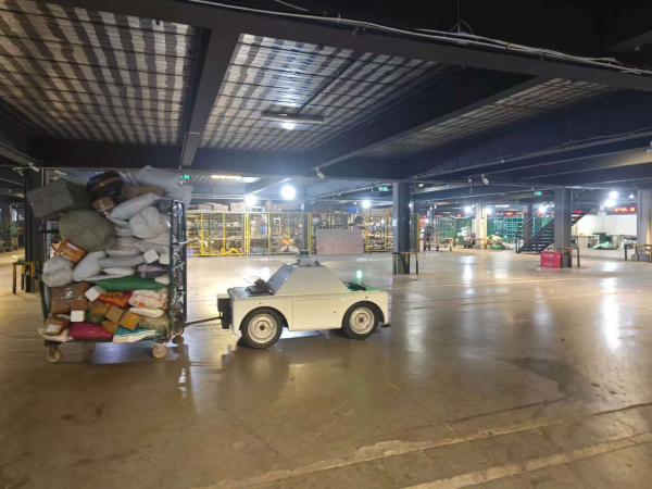 双流机场邮件处理中心相关负责人余诚轩介绍:“笼车自重沉,装满邮件后更难推动,以前员工推笼车时容易因视线被遮挡撞到柱子。现在方便多了,工作人员只需在手机小程序下单,‘小白’就会不知疲倦地在场地内穿梭运输,既节省了不少人力,还大大减轻了劳动强度,太实用了!”