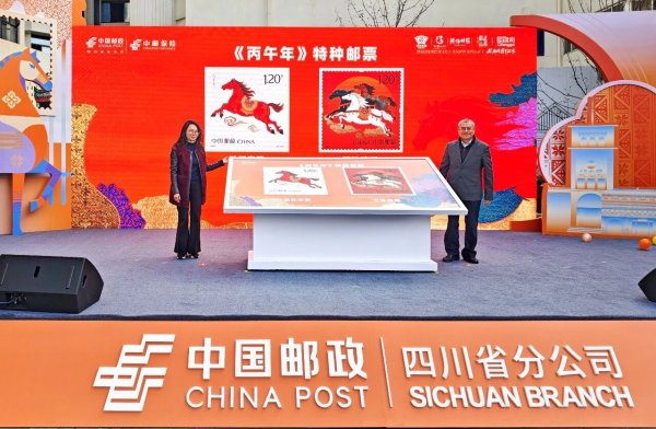 骏马嘶春,福运连年。1月5日上午,由四川省邮政管理局、四川省邮政分公司、四川省集邮协会主办的“‘丙午神骏 邮礼传薪’2026年《丙午年》特种邮票首发式暨第八届生肖嘉年华”在成都祠堂街艺术社区举行。四川省文化和旅游厅非物质文化遗产处、成都市文化广电旅游局、成都市青羊区人民政府等单位嘉宾到场参加。