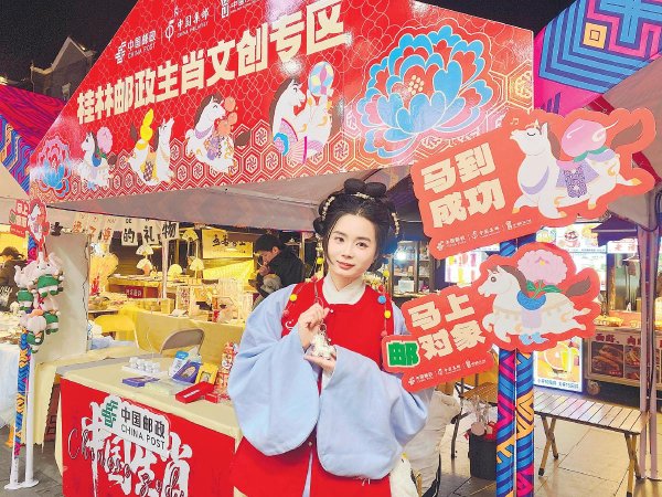 1月1日至3日,广西壮族自治区桂林市东西巷旅圩集市热闹开集。桂林市邮政分公司积极参与,通过邮政文创展示、主题打卡板布置,为市民和游客打造一场可玩、可购、可邮的沉浸式文化体验。