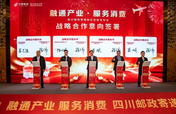 3月13日,四川省邮政分公司“融通产业 服务消费——四川邮政寄递新生态链发布会”在蓉举办。省归国华侨联合会、省交通运输厅、省邮政管理局、省经济和信息化厅、省农业农村厅、省商务厅、省经济发展促进会等单位相关领导,以及高端电商、高新技术企业、国际物流等领域90多位重点客户代表应邀出席,共话寄递产业创新发展,共筑服务消费新生态。